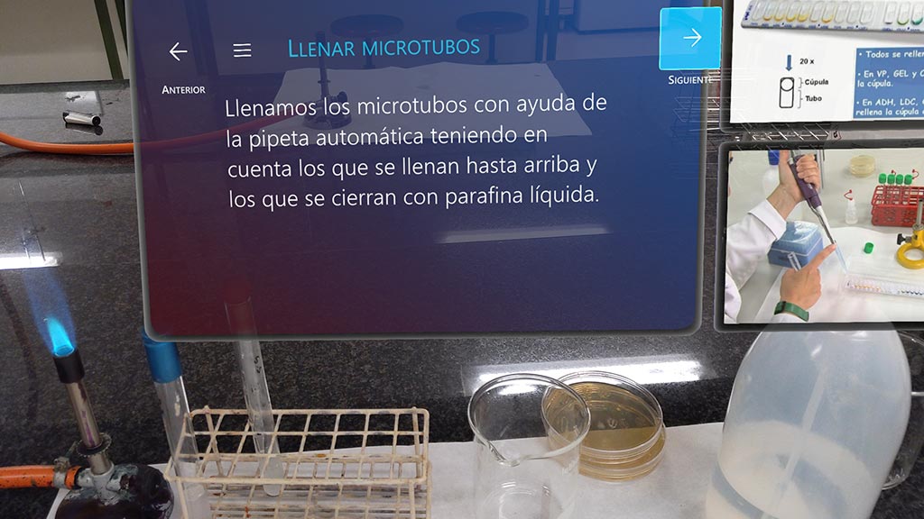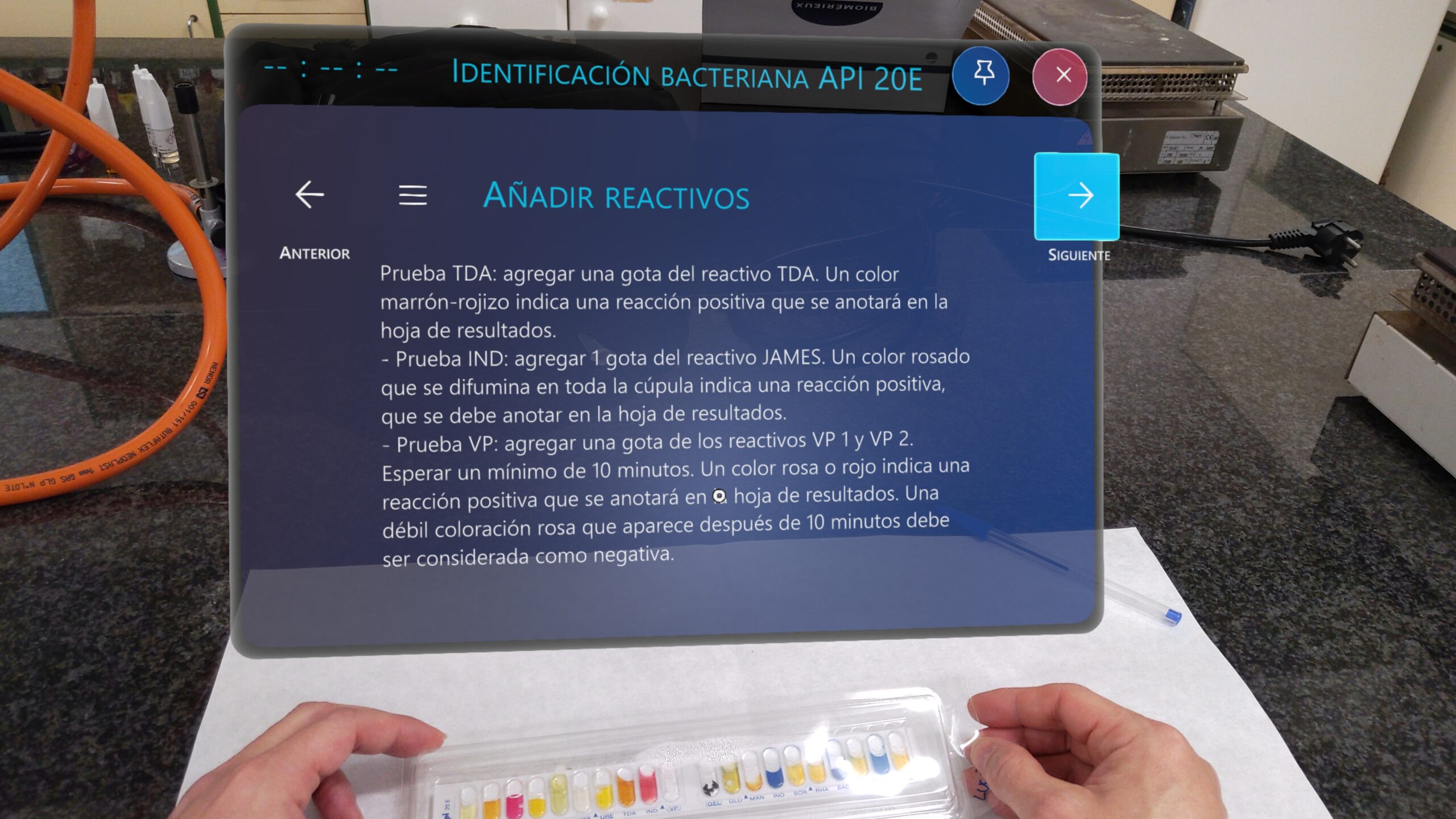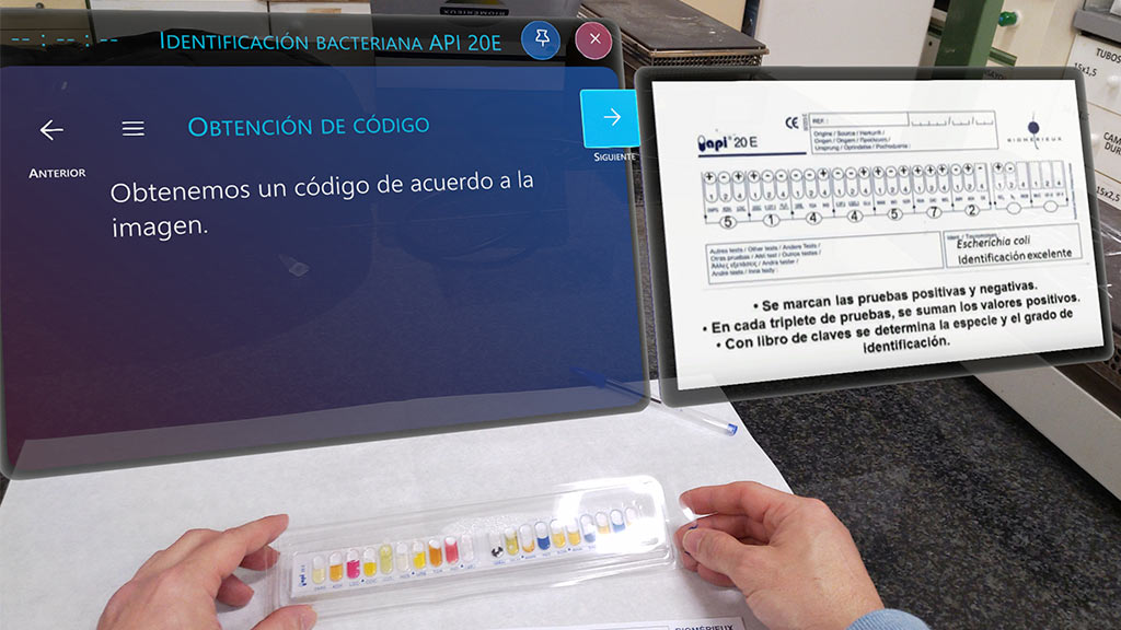 Specifically, second-year students use this tool with Microsoft Hololens 2 Mixed Reality glasses in the Basic Microbiology and Biochemistry Techniques module to carry out a bacterial identification with the API 20E gallery.