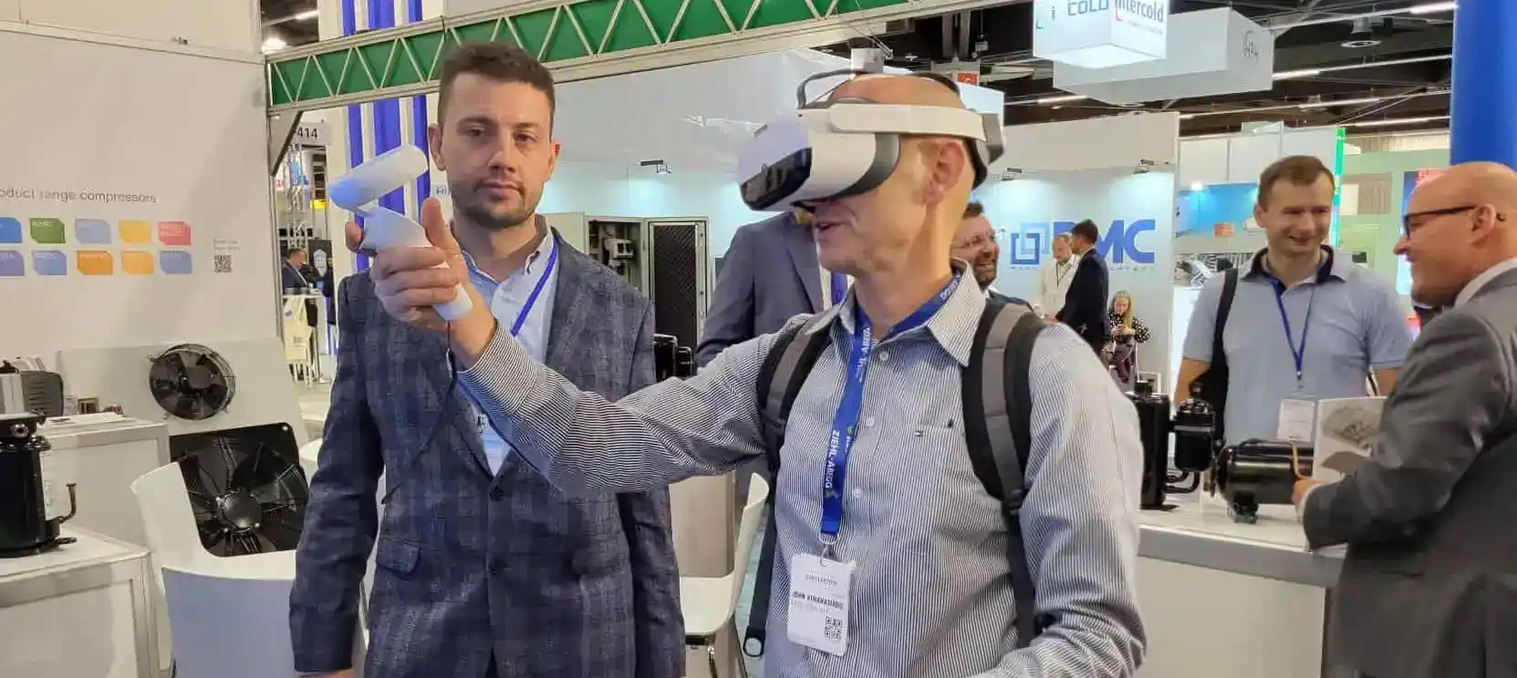 Showroom virtual compatible con gafas y PC, desarrollado para la empresa AREA Cooling para que los clientes puedan conocer de una manera inmersiva las características del producto iCOOL 10 MHP así como información sobre la empresa.